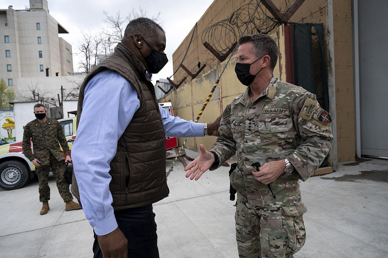 奥斯汀(右)于 2018 年 9 月成为美国和北约驻阿富汗部队的指挥官