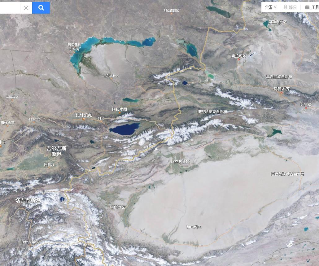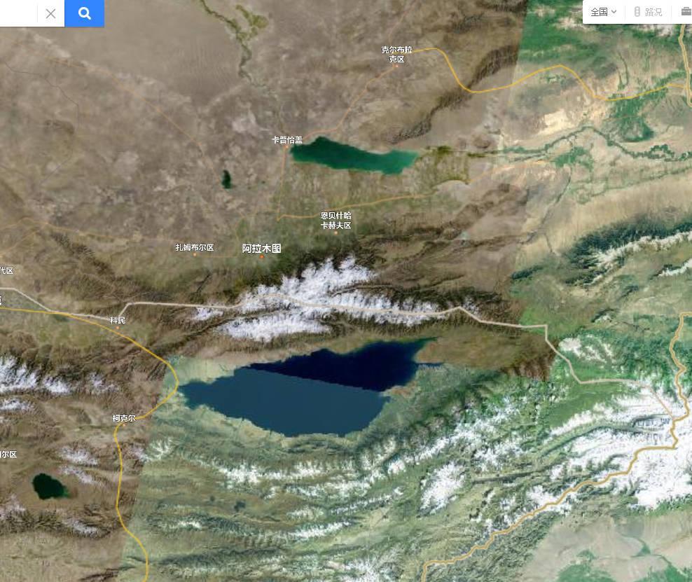 4. 借助地图观察阿拉木图的地形和周边地理位置,可见周边都是雪山和高原,以及荒漠,石油和天然气丰富。