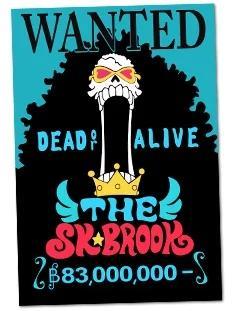 第八位,音乐家布鲁克,赏金八千三百万贝里。果实能力开发越来越强大,布鲁克不怕海水,可以在大海上奔跑!