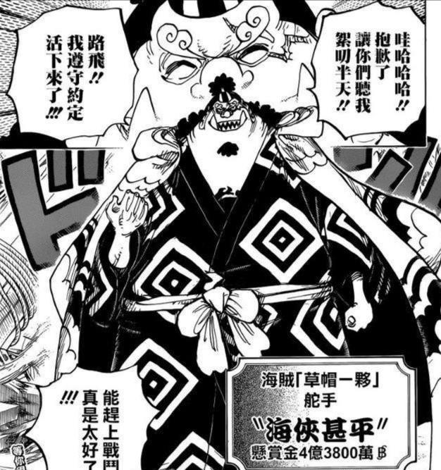 第十位,刚加入草帽海贼团的海侠甚平,目前赏金四亿三千八百万贝里