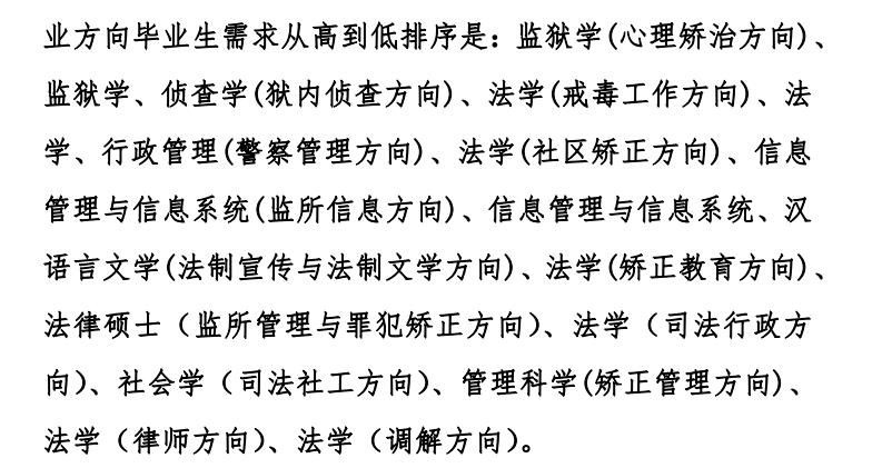 在开设的专业里面,哪些专业好就业呢?建议选择监狱学方向的专业,就业还是比较有保障的,由于对司法警察招考制度的改革,到2019年后的入警率已经在接近90%了;可以看出中警院监狱学毕业生的入警率也是非常高的,与公安院校的公安专业入警率基本已经是同一水平线上了。