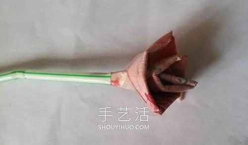 10.从花朵的底部插上一根吸管,作为花茎。