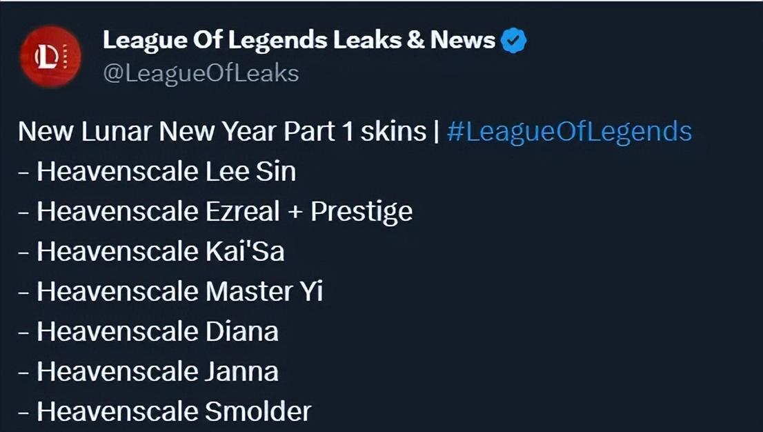 英雄联盟:龙年限定皮肤名单曝光,盲僧再度成为龙年限定