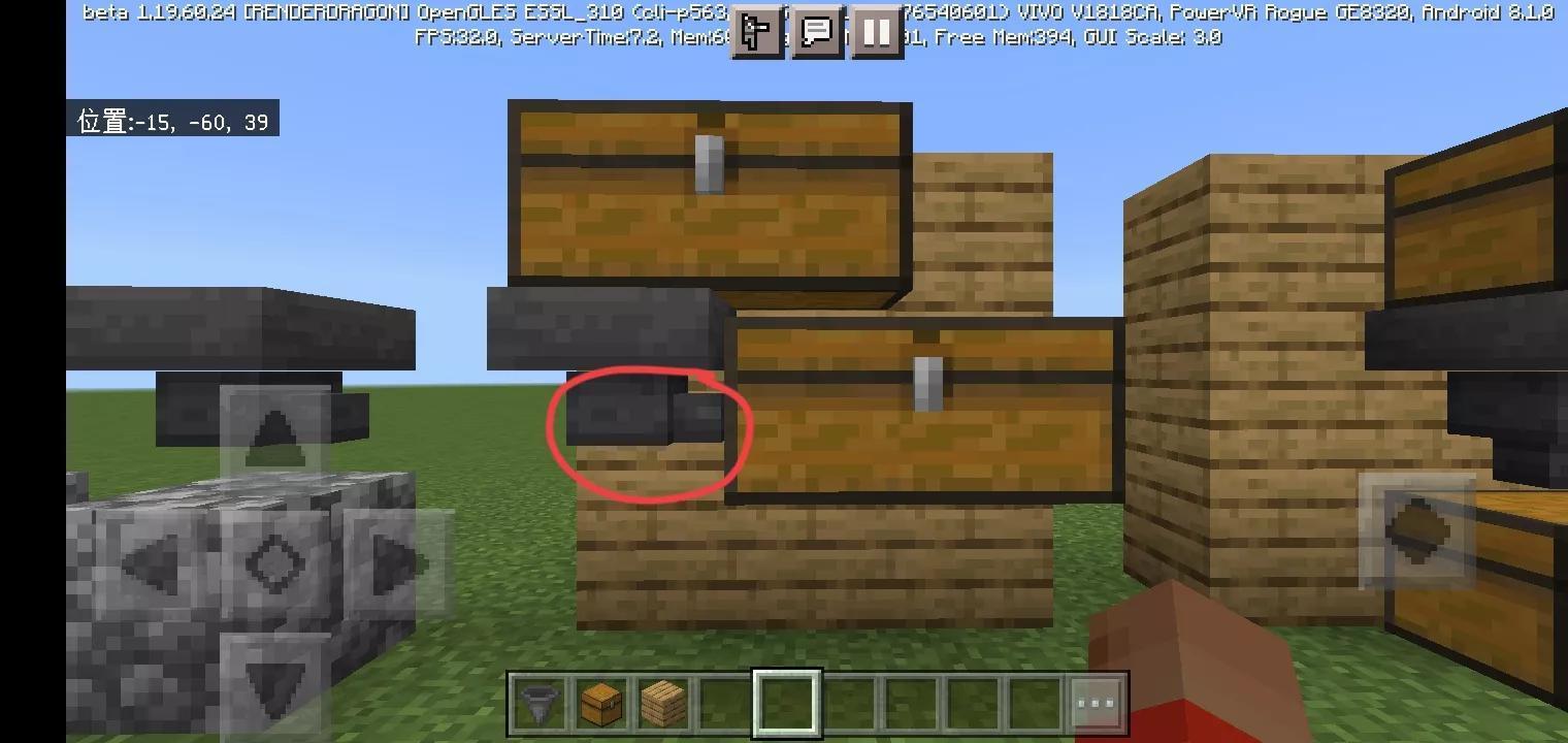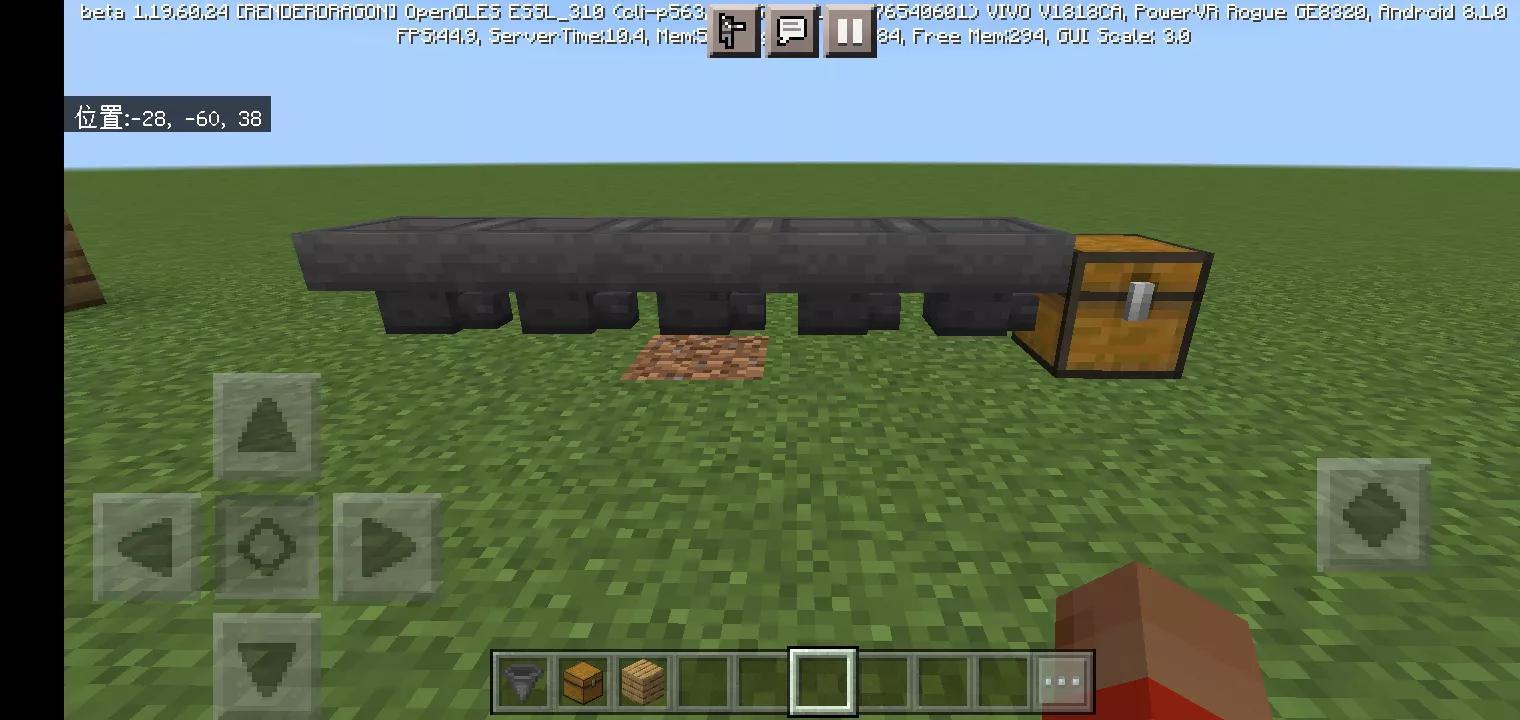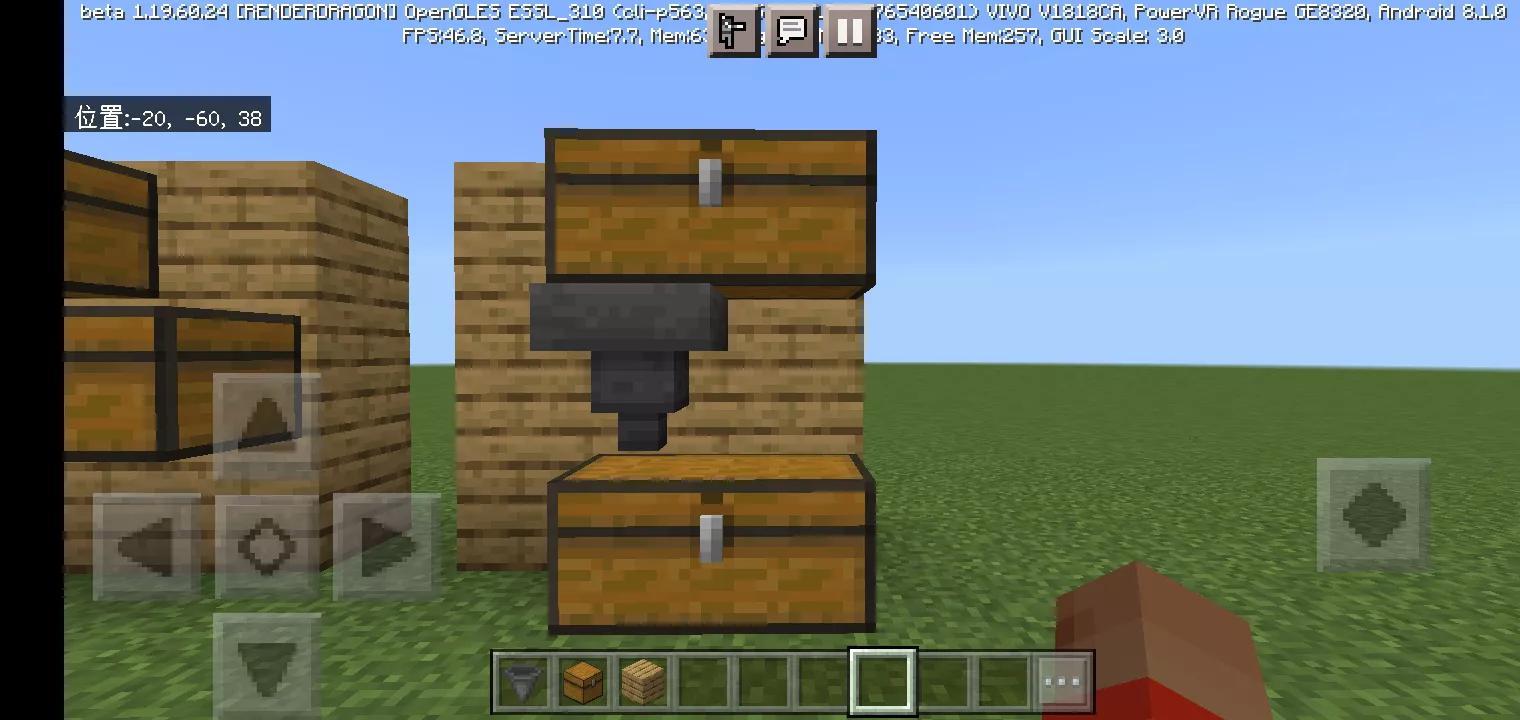 图中的漏斗可以收集上方的掉落物品,并将物品向右传递至箱子。漏斗的放置方式依旧是潜行,再对着右边的方块按一下。