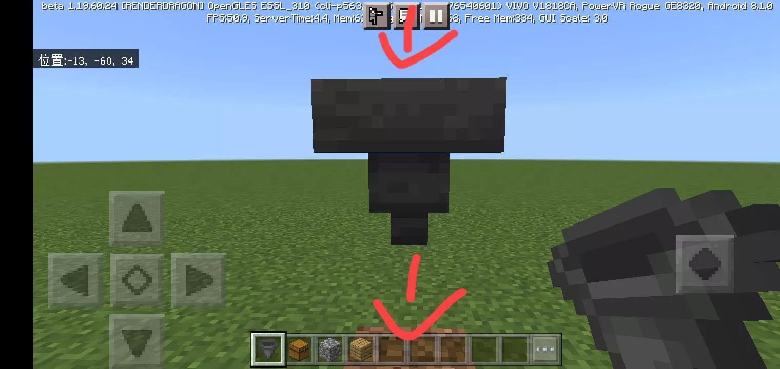 如果想将左上方箱子里的东西传到右下方,也是先变成潜行状态,再手持漏斗对着右下方的箱子按一下。