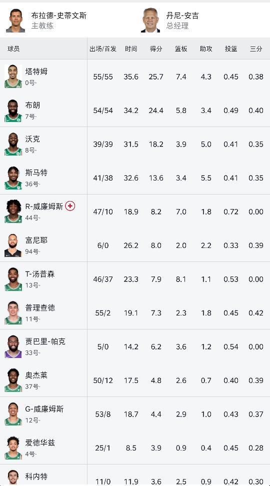 如今在总经理安吉和主教练史蒂文斯的带领下,球队目前取得东部第六的成绩。凯尔特人是一直季后赛球队,这几年来球队也在不断的朝着自己最大的目标“总冠军”冲刺着!