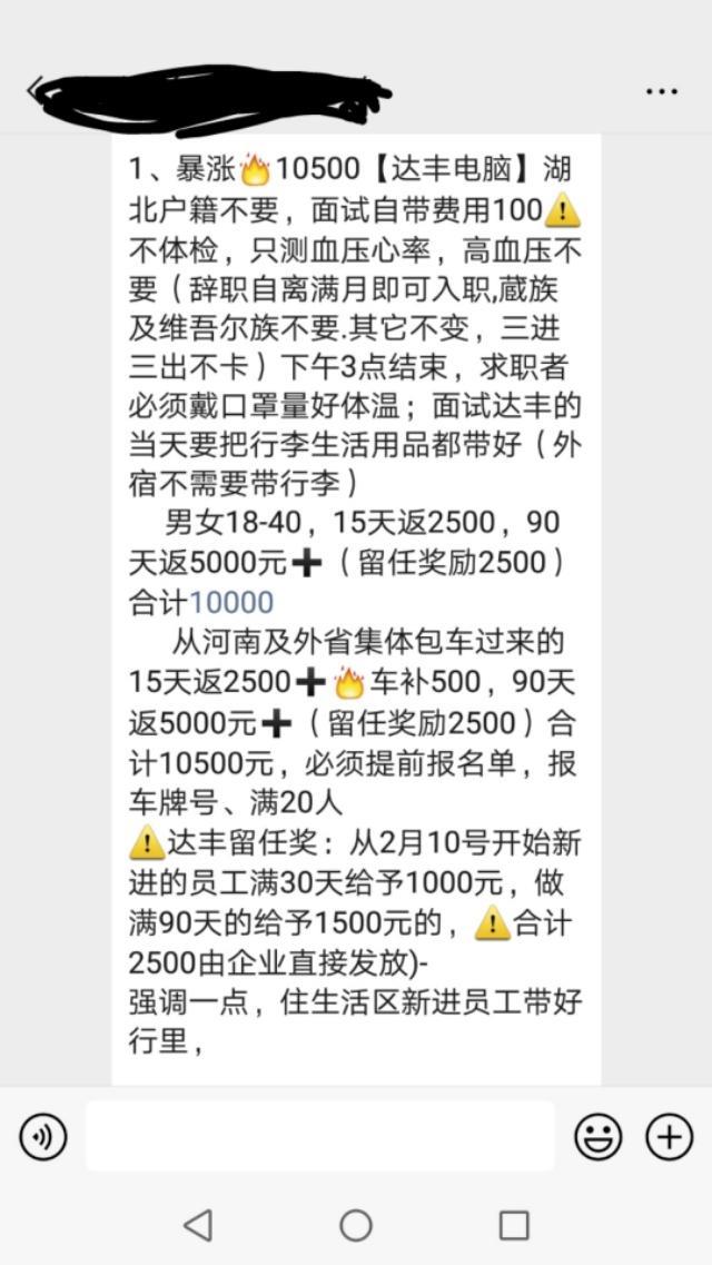 全球500强企业,上海达丰电脑天价招工是否放松对疫情防控