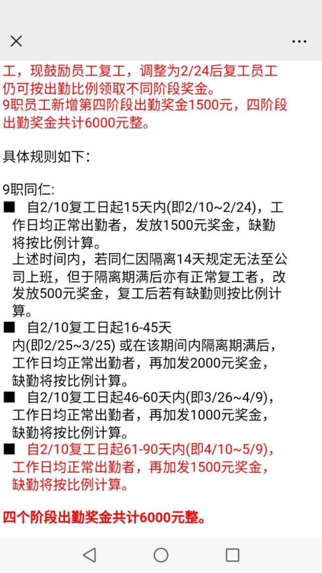 即便如此,还是有些人不愿出来或出不来,各大企业还出现招工很难的尴尬局面。于是各大企业都纷纷放出大招,奖励公司同仁劝返未复工人员。