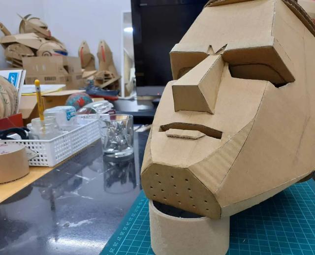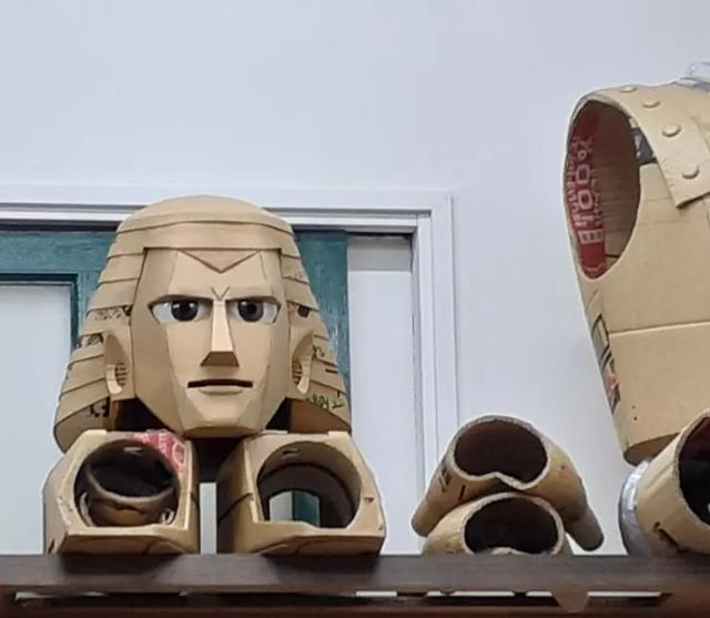 推主利用纸板将铁甲人的脸部、身体与机械身体的各细节制作出来,透过炉火纯青的技术,轻松将轮廓制作出来。