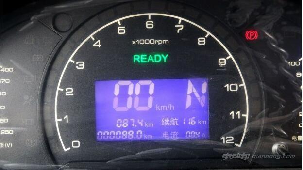 内饰上威旺306电动版车型的中控台布局与汽油版车型保持一致,上深下浅的配色符合国人的审美风格,整体看上去规整简约。中间的蓝色液晶屏显示效果 还算清晰,涵盖了时速,总里程数,续航里程和电流等信息。