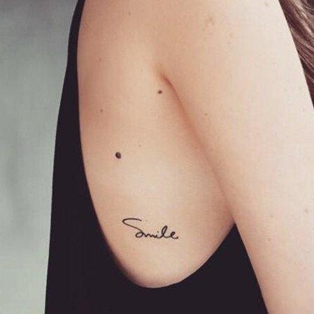 喜欢简单的妹子,英文字母最适合呢!腋下这个位置也是不错的选择,夏季大家喜欢穿这种低袖口的衣服,微微的露出纹身图案,性感又有女人味,值得一试哦!