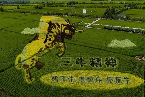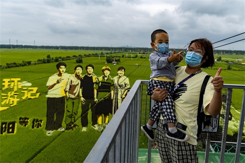 2021年8月12日,雨后的沈阳稻梦空间景色更加别致,市民和游人纷纷来到这里,特别是很多家长带着小朋友观赏游玩。沈阳稻梦空间位于沈阳市沈北新区兴隆台锡伯族镇兴光村,占地1550亩,以稻田彩绘为特色,打造稻田艺术王国,现为国家AAA级景区。走进稻梦空间,一幅幅巨大的稻田画映入眼帘,有建党100周年、乡村振兴、三牛精神、青春环游记等。每幅画卷都栩栩如生,人们在这里观光游玩,拍摄留念。