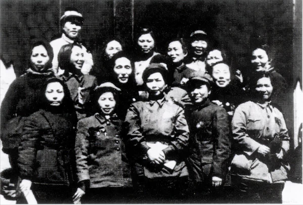 图|1949年,当年参加红军的32名女战士中部分在北京合影,一排左一为刘英,二排右一为蔡畅