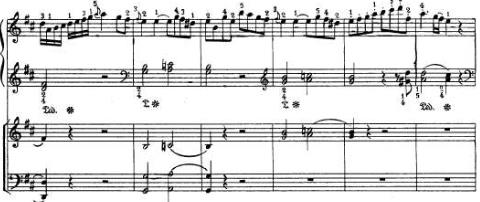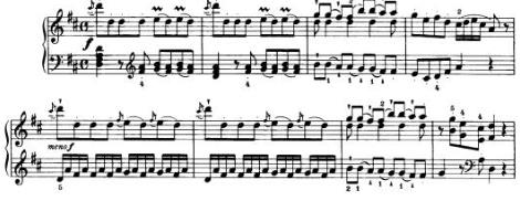 第97小节,颤音的速度要尽力快,但在自己的能力范围内。从第98小节开始要注意对比,加入适当的装饰处理。最后一小节要坚决地结束。