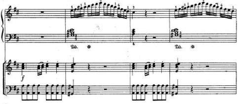 在演奏过程中,我们可以加重带有跳音记号的音符,以达到我们想要的效果。同时,我们需要控制好第3、4、5指,使它们非常独立且有力量,这样才能展现出旋律的特点。如果没有足够的力量,声音就会被抑制在内部,听起来不美妙,缺乏层次感,也不可能呈现果断干脆的效果。