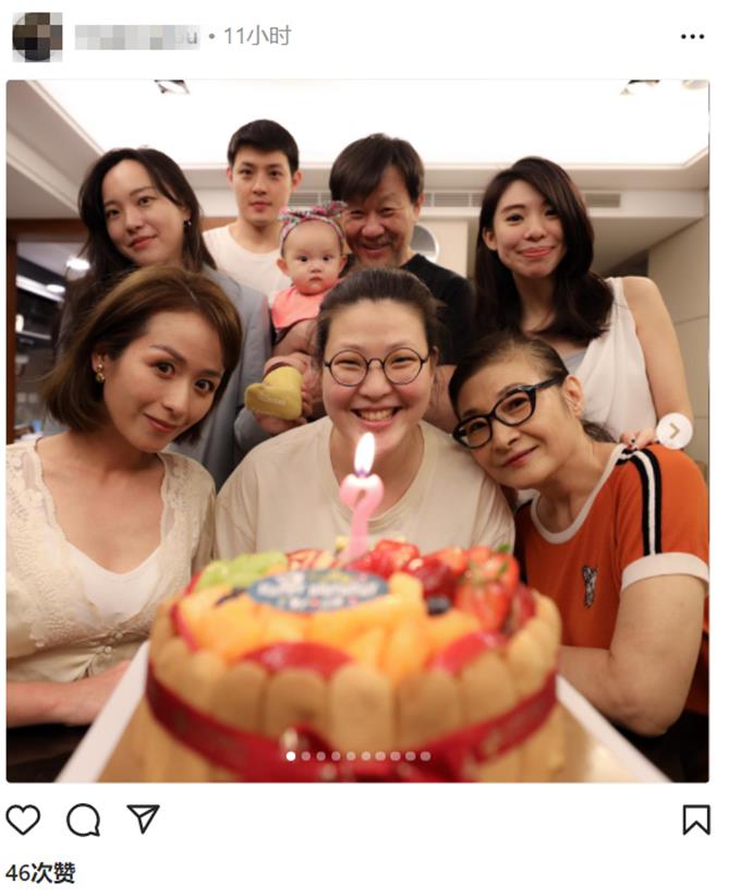 而在他女儿旁边便是他的妻子崔瑶琪,整个人显得非常年轻,靠在女儿肩膀上,和大家一起为女儿过生日。