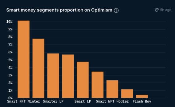 智能资金的探索似乎还没有开始涉足Optimism,目前智能NFT矿机与以太坊的重合度最高,达到了10%。这表明Optimism还处于早期阶段,生态系统还有很大的潜力和空间,需要继续发展。