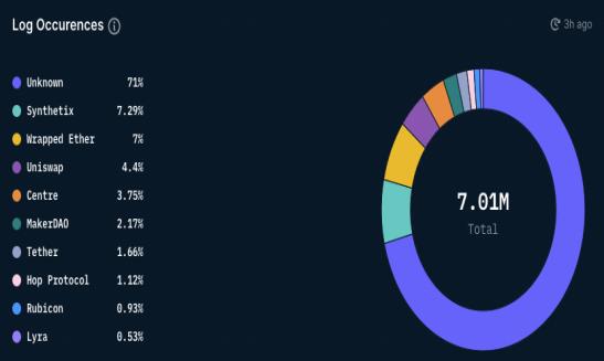 Optimism上各类dApp的日志发生率