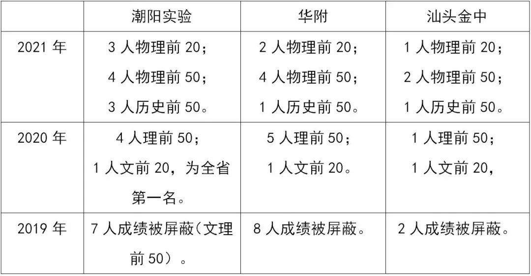 每年广东高考放榜,在全省的尖子生名单中,有一个学校是常客:位于汕头市潮阳区的潮阳实验学校,这所学校的高考成绩到底有多牛?我们将学校近三年的尖子生情况跟神学院华附、同地区的牛校汕头金中对比了一下: