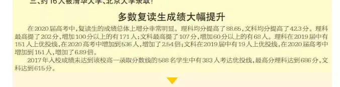 事实上,潮实也非常积极宣传复读生的成绩,大有把复读生当作学校王牌产品来打造的意思: