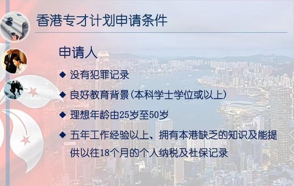 根据官方表述,申请专才人员需具备香港特区所需而又缺乏的特别技能、知识或经验,可根据输入内地人才计划申请来港工作。这个跟优才计划区别是专才计划没有配额限制,也不限行业,但是必须要先获得香港雇主聘用!(而且得是全职的)