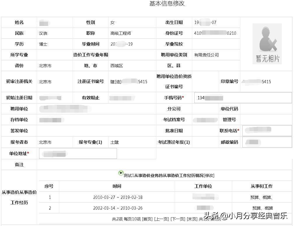 申请人需要修改聘用单位资质证书变更、身份证号码正常升位的,可使用该功能进行修改。