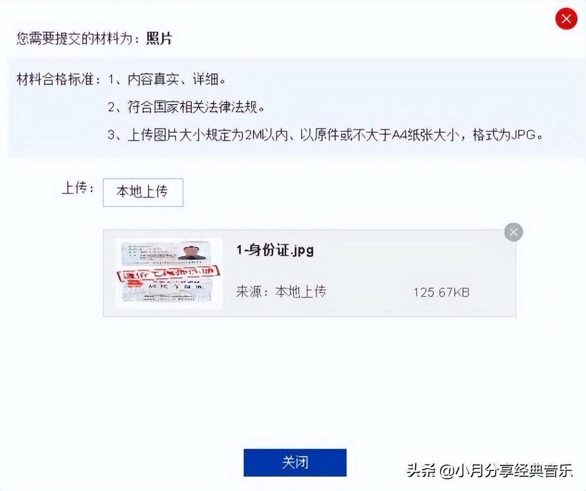 第一步:点击每个文件后的“上传图片”按钮,进入具体上传图片页面,按要求上传图片: