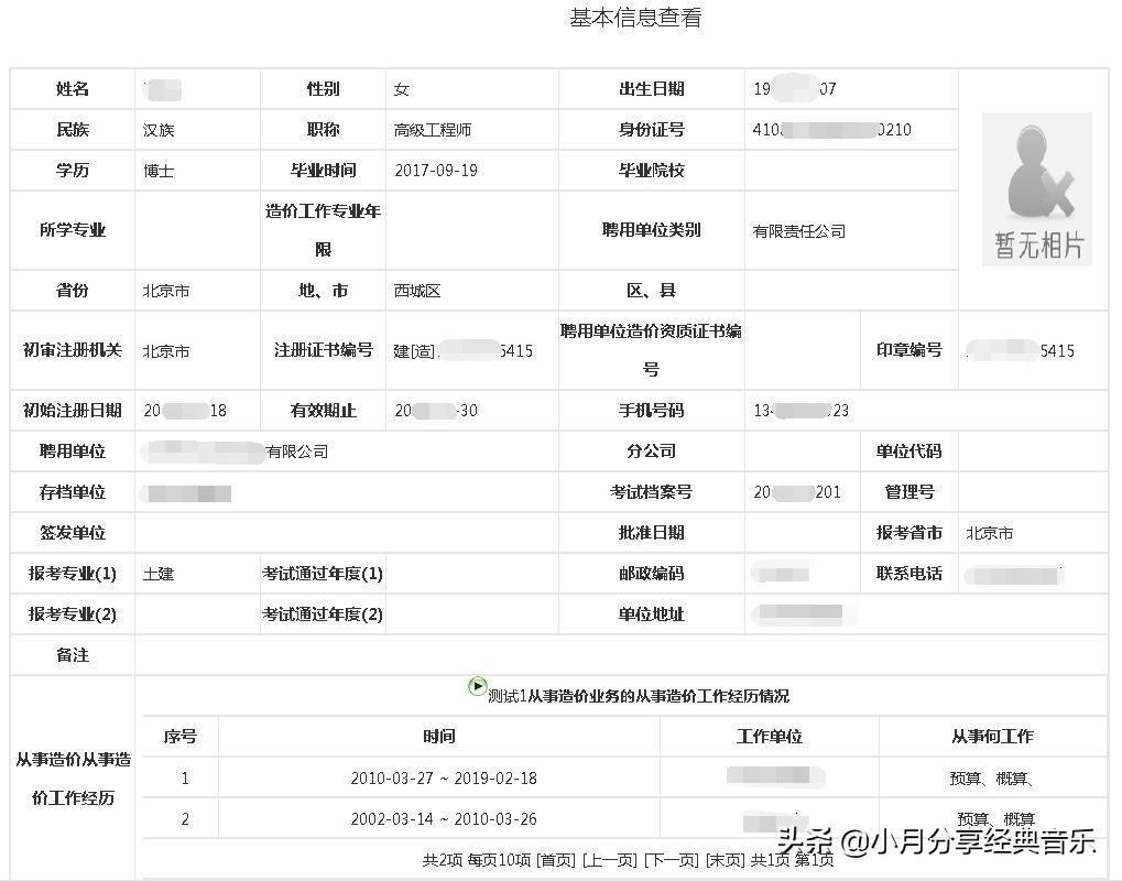 点击“工作经历填写”,该页面包含:工作经历查询页面、添加和修改或删除本人从事造价工作的经历,填写完成后可进行上报操作。