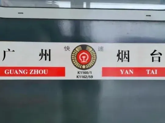 K1160次列车,日常运营的时候,广州前往烟台的时候,使用的车次号是K1160/1161次。