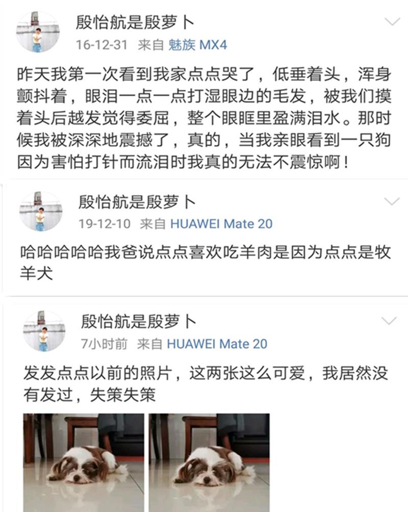 她的微博里记下了这只现已9岁的小狗的点点滴滴: