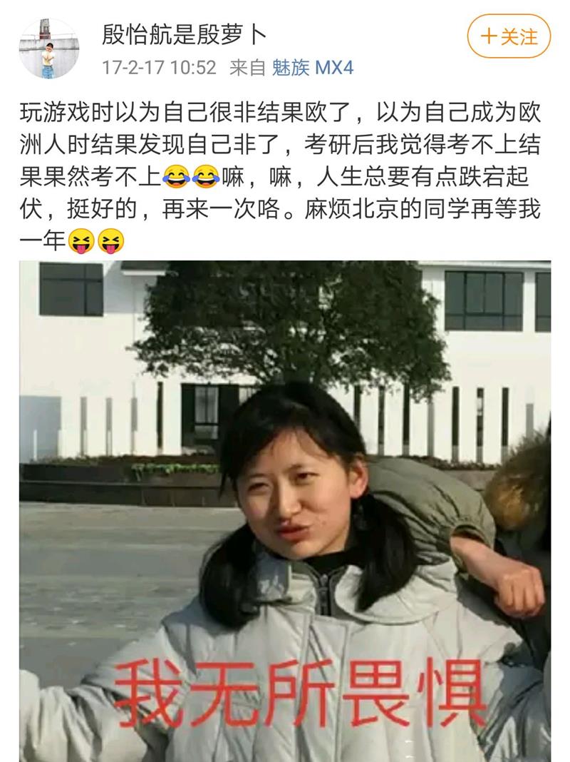 考研失利后,她在微博上,表示:人生总要有点跌宕起伏,挺好的,再来一次咯。