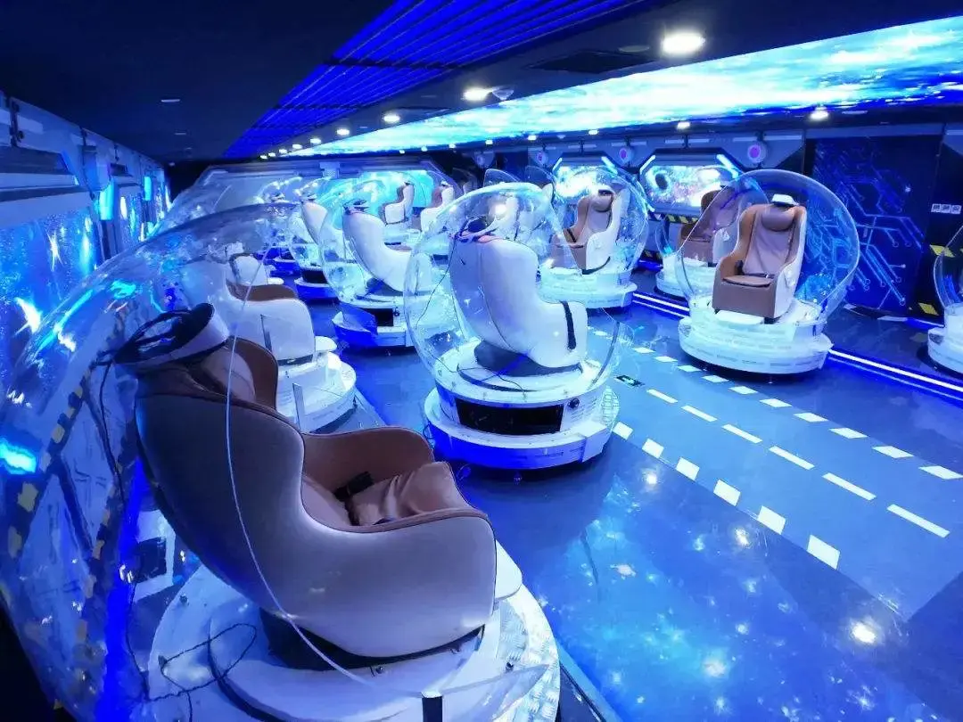 如离开映还有一段时间,又不想太早进入影厅,我们就可以去体验一下大堂的VR的独特体验或互动游戏什么的,我们不用专门去买票,只要有空位,上机并扫脸后,带上装备就可以开玩,过了几分钟,玩好直接走人;