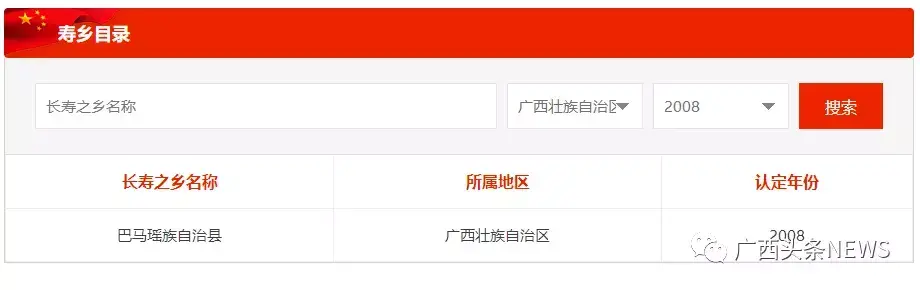 图为官网截图。广西2008年获评“中国长寿之乡”名单。