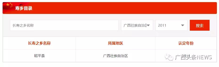 图为官网截图。广西2011年获评“中国长寿之乡”名单。