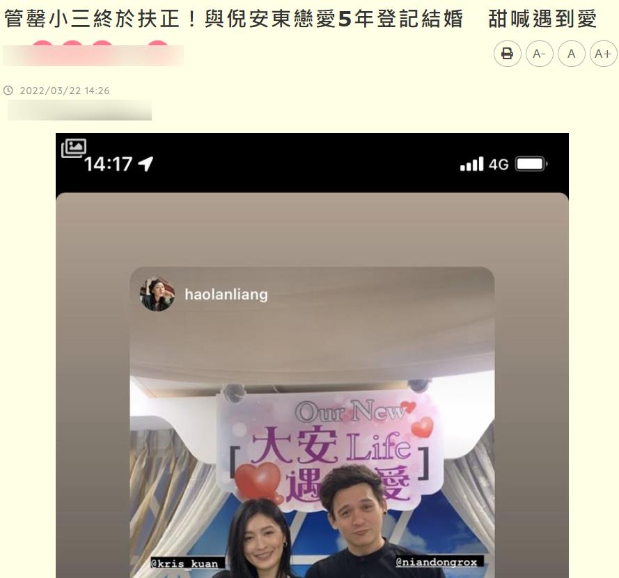 倪安东管罄高调官宣结婚,台媒嘲讽:小三终于扶正了