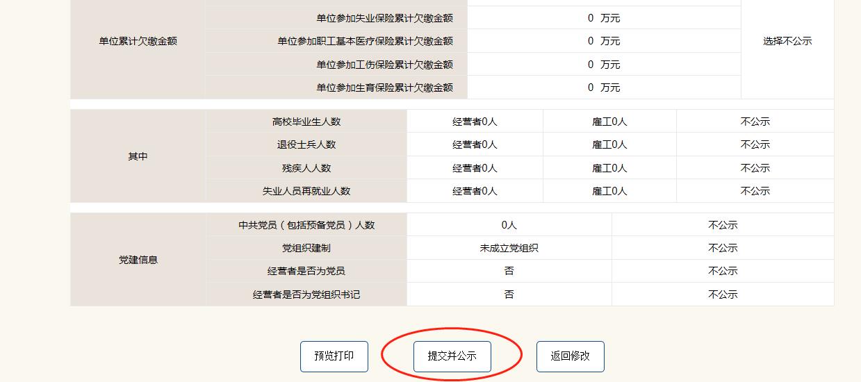 第七步:上一步点击保存后,出现下图页面,点击“提交并公示”即可。
