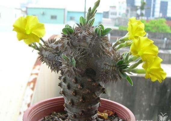 这是夹竹桃科的多肉植物,因为它的根茎不规则的膨大,外皮是褐色或者是灰色,有不规则的凸起和皮刺,叶柄直接生于根茎突出的部分,样子奇特,耐干旱比较怕积水也比较耐寒。