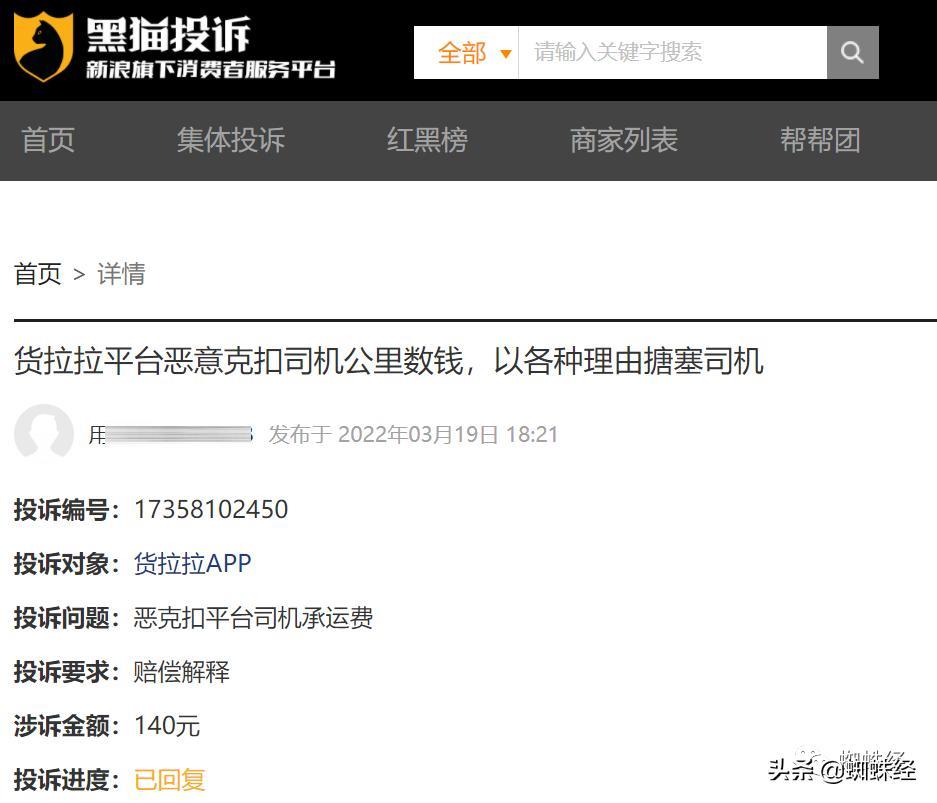 近几年,人社部一直不断强调新业态劳动者保障,骑手、网约车司机等皆在其列。2021年11月10日,货拉拉也宣布成立“司机权益保障委员会”,如今过去5个多月,效果如何?4月14日,蜘蛛经在黑猫投诉平台搜索“货拉拉”, 结果显示有15868条,具有讽刺意味的是,司机投诉居然占了绝大部分。