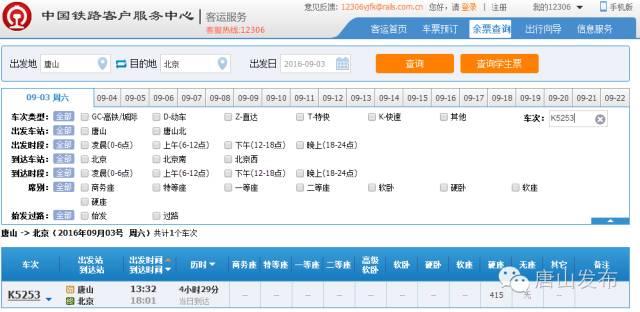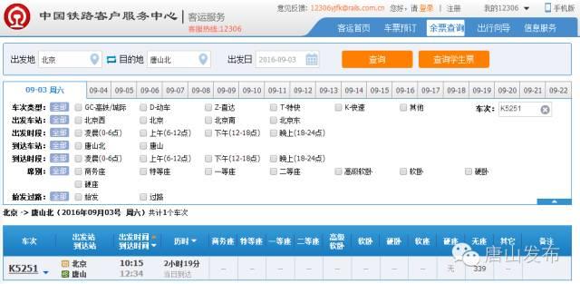 各位小伙伴们,为了更方便唐山人往返北京,或大学新生报到去北京转车,9月1日至9月10日铁路局加开两列临时客车往返唐山与北京,车次分别为K5251/4与K5253/2次。