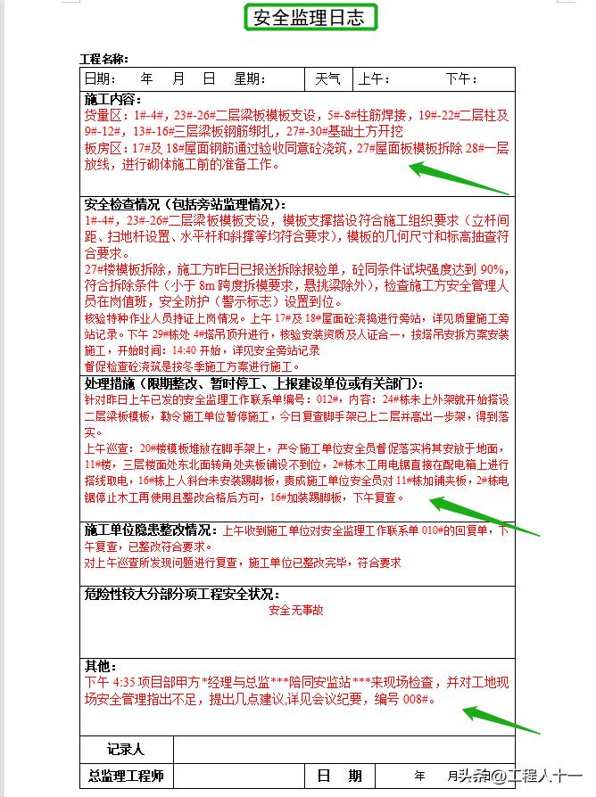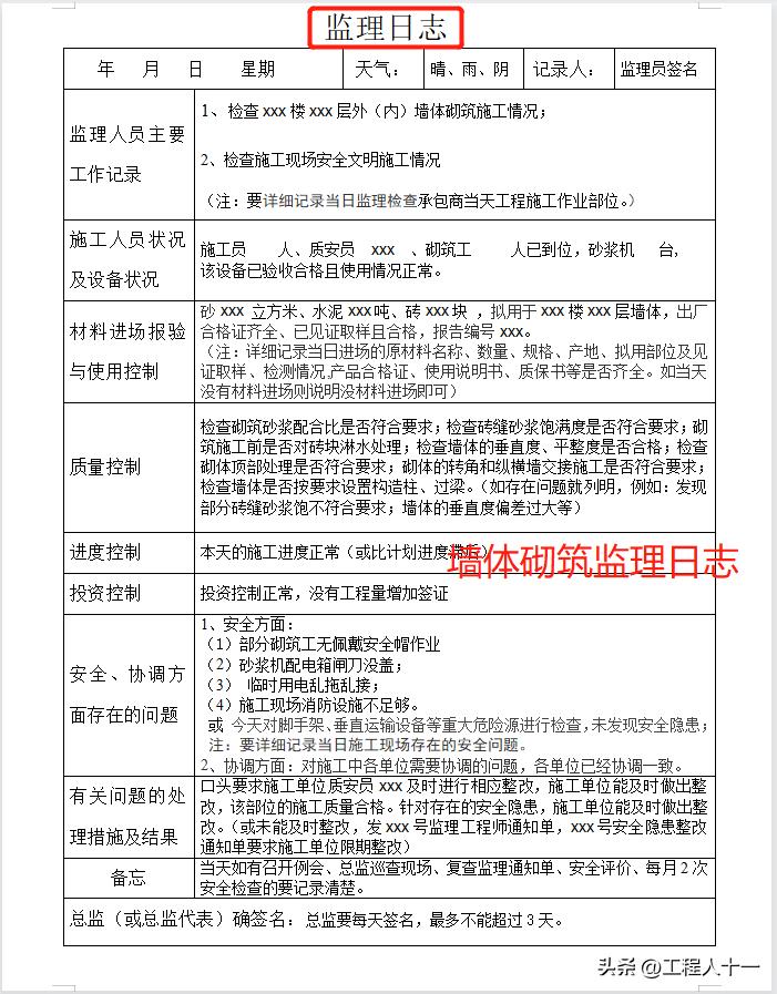 工地办公室的监理小张,一写监理日志就头疼,我给他整理了一份最新的20套监理日志范本,包括墙体砌筑、桥梁施工模板安装、工程监理日志管理办法等,稍作修改就可以直接使用,一起来看看吧