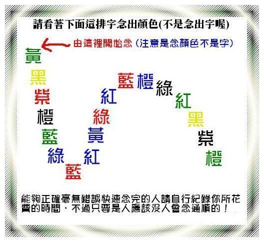 2、你能念出这些字的颜色吗?