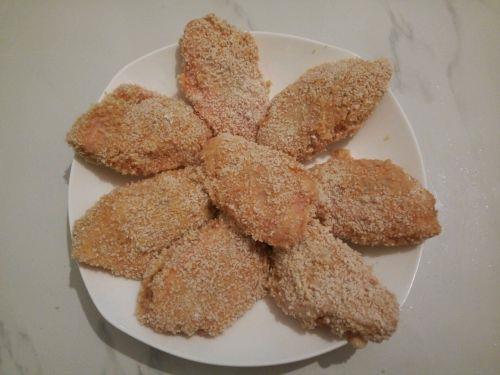 主料:鸡翅中8只,玉米淀粉25克,鸡蛋1个,面包糠60克,十三香,盐各1勺,生抽,料酒各1勺