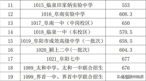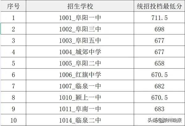 刚刚,阜阳各高中录取分数线最低分公布