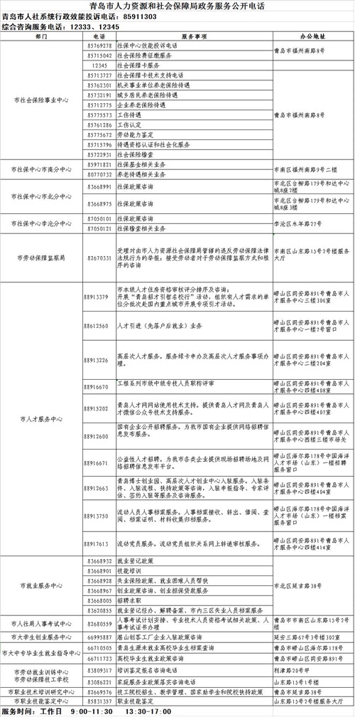 收藏转发!青岛人社局政务服务公开电话出炉