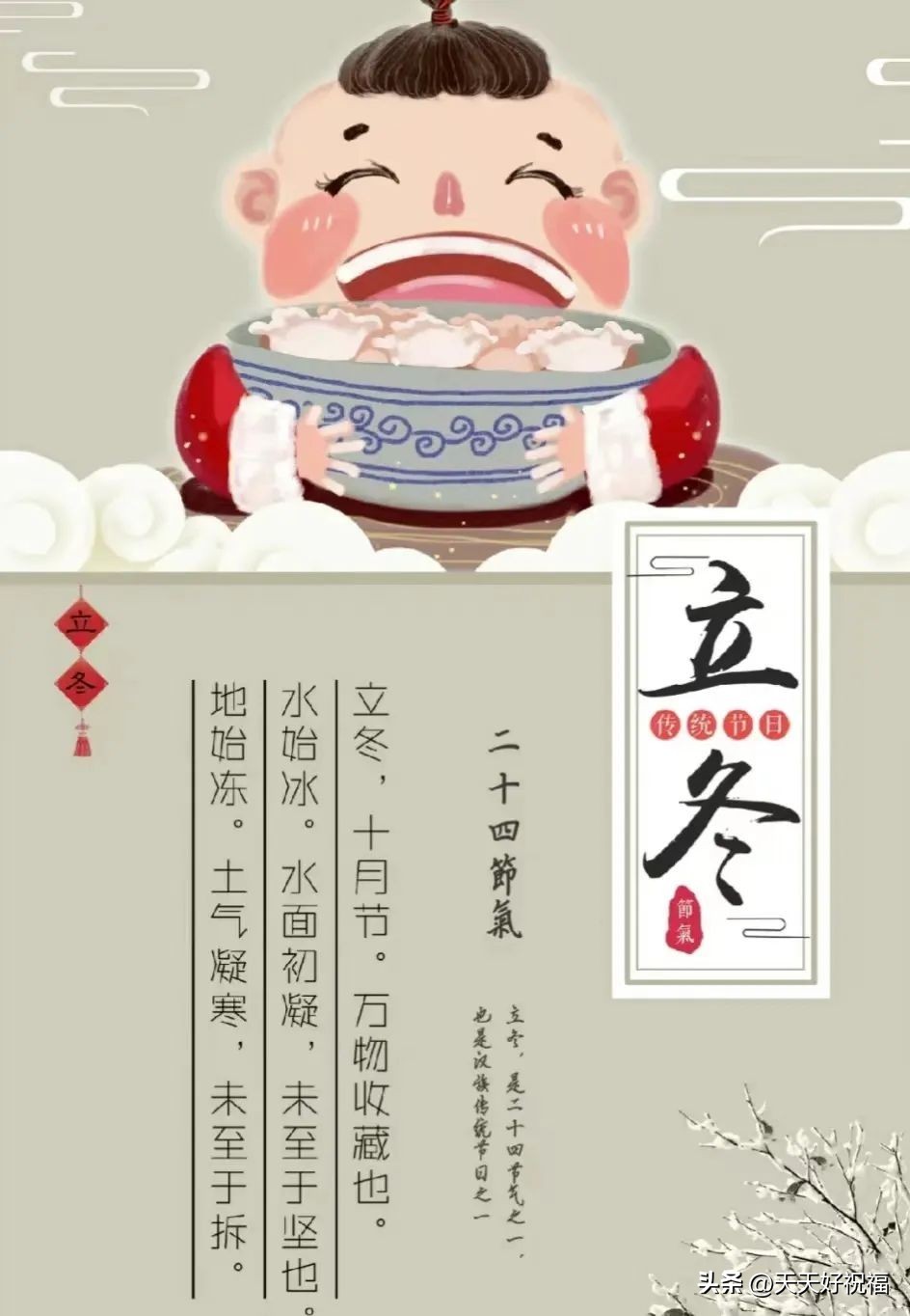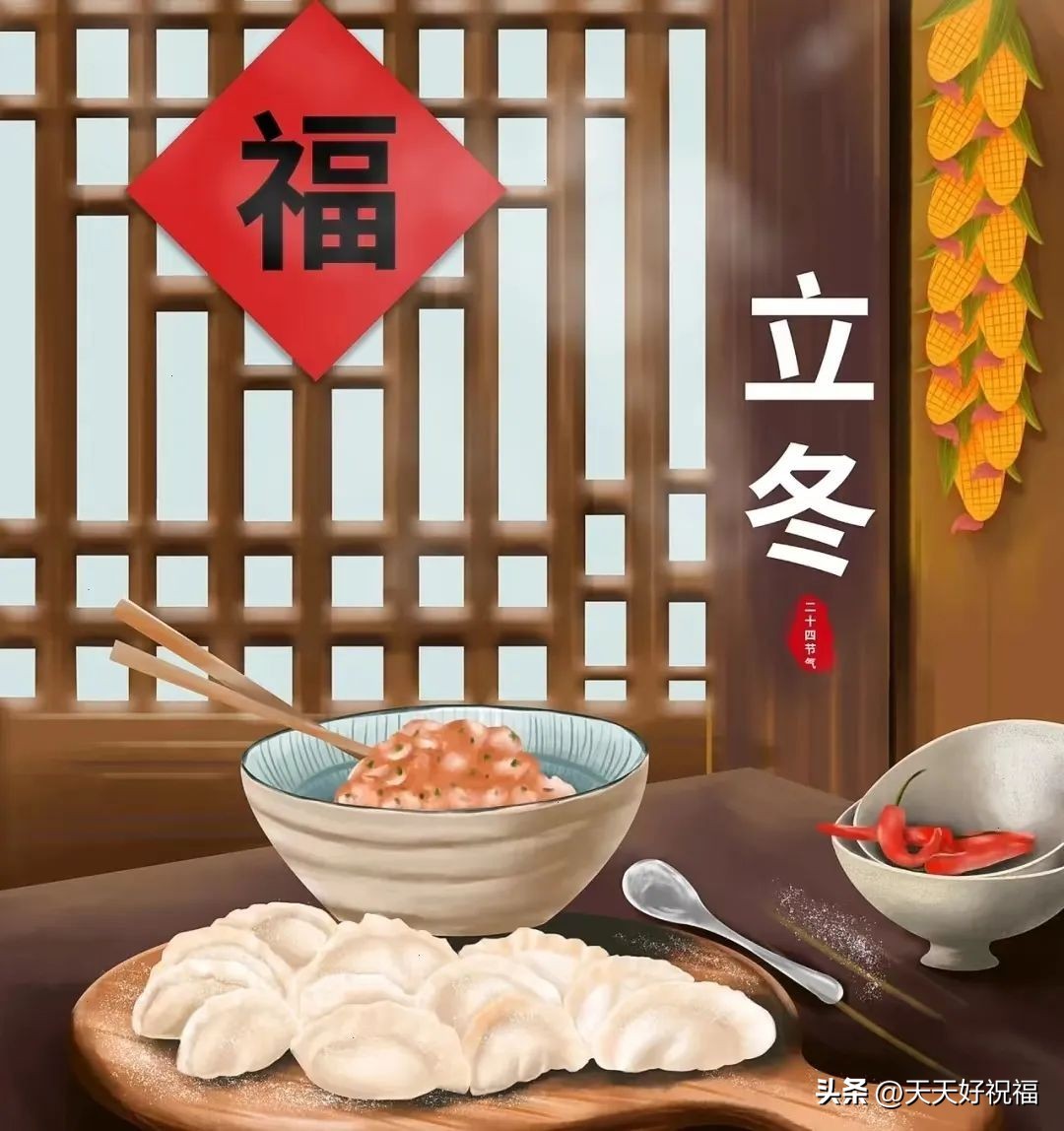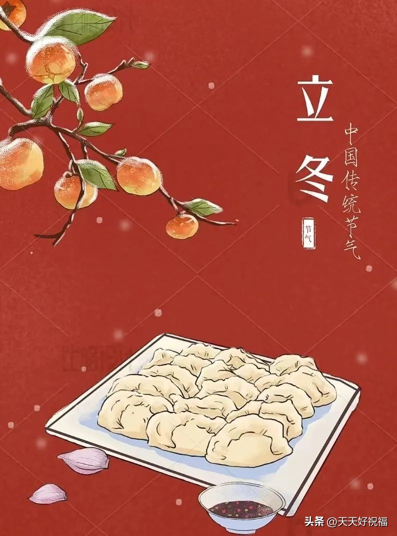 立冬了,煮上一盘饺子,平安皮儿包着如意馅儿,用真情煮熟,吃一口快乐,吃两口幸福,吃三口顺利,再蘸着老陈醋,喝着幸福汤,感觉味道好极了!最后祝您:立冬快乐!大家早餐要吃好!