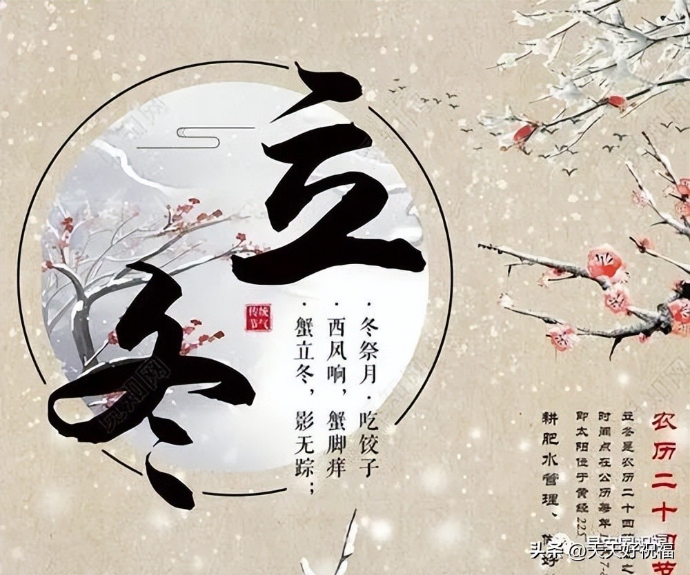 北风冷冷吹送,转眼迎来立冬;清霜冷絮满地,惦念暗潮涌动;添衣保暖防冻,烦恼一切随风;夜夜黄粱美梦,日日身心轻松;短短问候情长,愿你幸福一冬!立冬快乐!