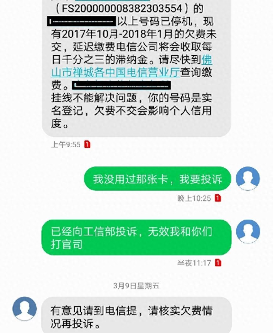 说实话,我压根忘了这张手机卡的存在,号码我从来没记过,流量没使用过,电话也没打过,这张卡对于我貌似从来没有存在过。直到3月初的一天,突然接到了一个电话,是一个律师事务所打来的,她说是中国电信委托她们进行的处理,由于我的电信卡欠费300多,已经被列入了黑名单,叫我赶紧缴纳欠款并销户处理。天呐!我愣了大半天才想起还有那么一张电信卡。怎么会欠费呢?电信卡不用不是自动销户的么?我向她质疑。但是她说实名制的电信卡是需要自己去销户的,否则会按最低消费的金额一直扣费三个月才停止,并进入黑名单。她还说,如果一直欠费,会以天算按一定比例算利息,达到一定金额还会上报央行信用系统,影响我的信用记录。