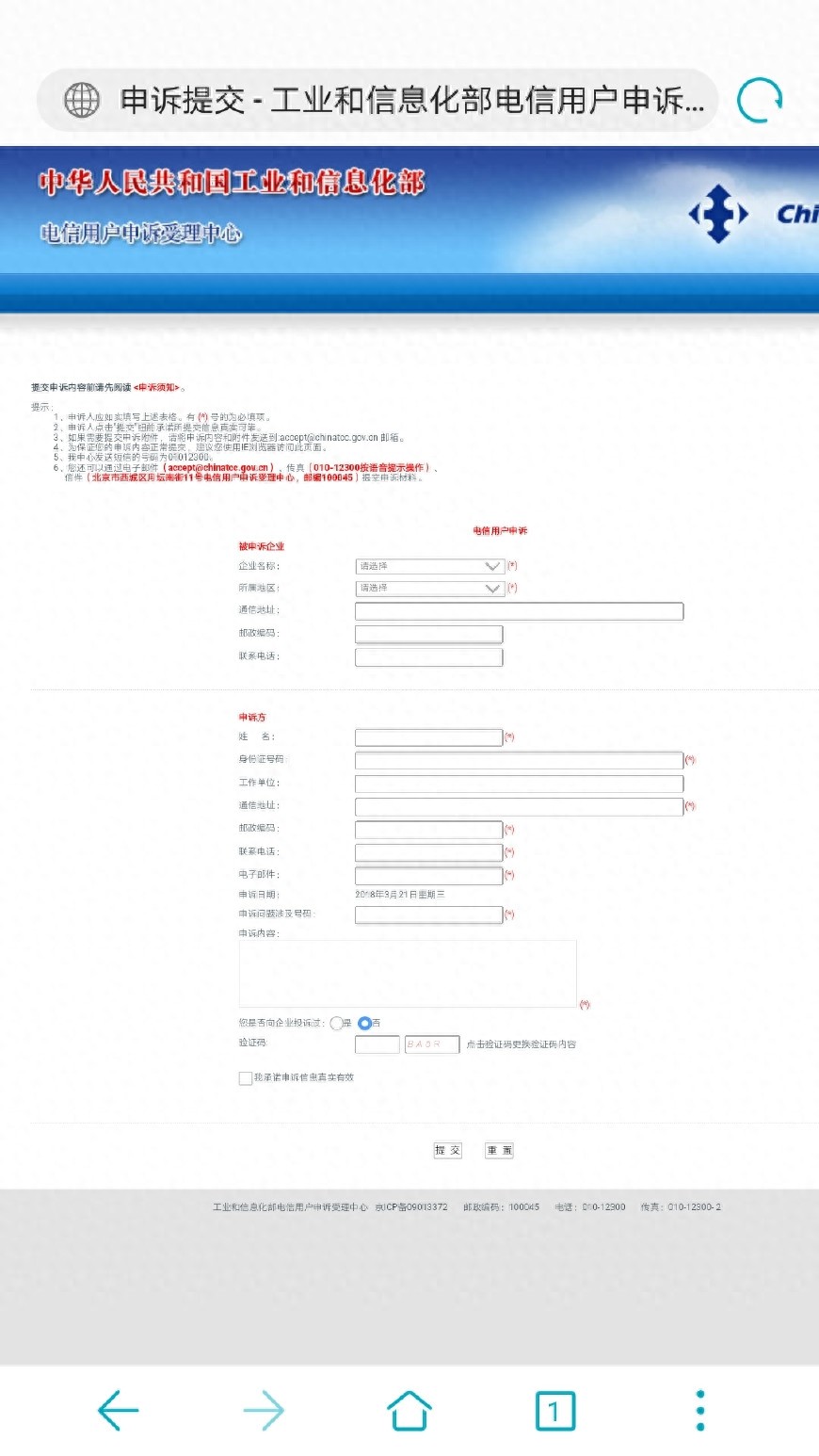 2.若对处理结果不满意,可以向工信部进行投诉,投诉的方式可以是工信部专门的网站(见下图),也可以是投诉邮箱。