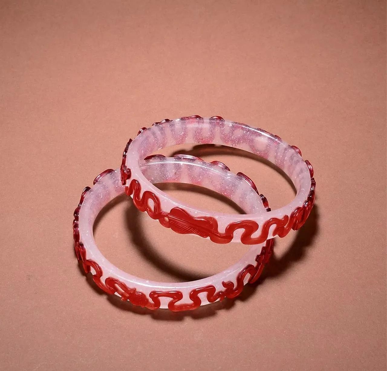 这是在故宫博物馆珍藏的一对乾隆时期的玻璃手镯,白色的内圈呈现着半透明的效果,外圈上雕刻着红色寿字纹做装饰,这字纹的点缀让手镯富有很强的立体感,很夺目。