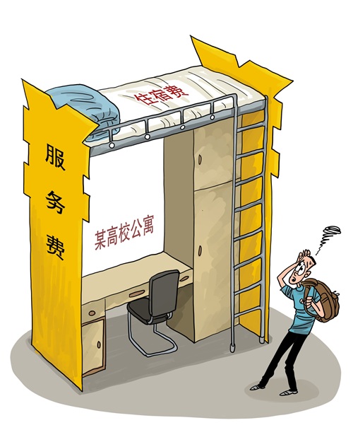 房东“顺应市场”, 学校“正在协商”,监管“鞭长莫及”,难道学生就该为天价宿舍买单吗? 王利民 漫画/张永文